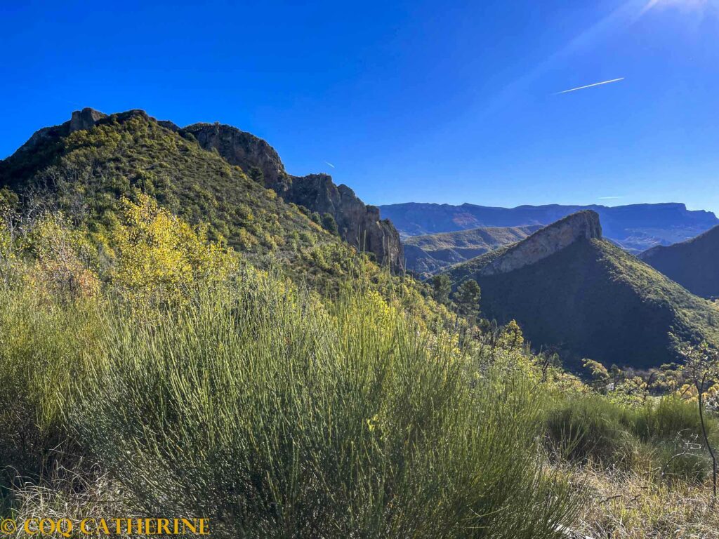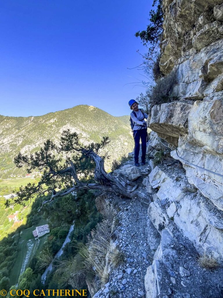 Ensuite, je continue par un ressaut vertical important, l’Os de la Seiche et je prends un point de repos et me longe sur ce passage athlétique !Je passe la Vete des chamous, tel un jardin suspendu avec ses genévriers thurifères qui dominent la vallée du Riou de l’Aune.