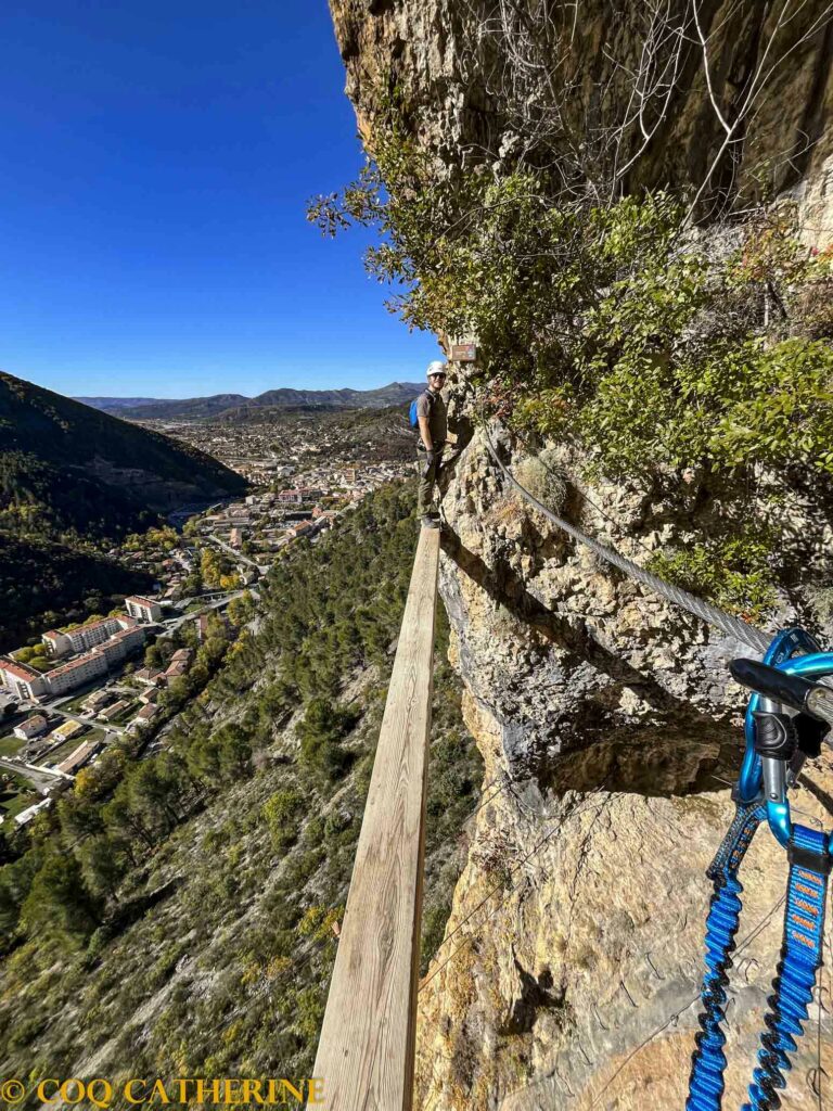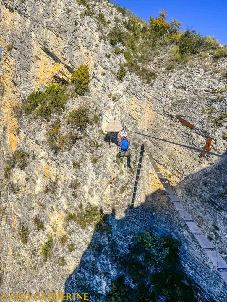 Avec trois itinéraires, le parcours des vautours, le parcours de l’aigle ou l’intégrale, je vous recommande de parcourir les deux sections. De plus, cette via ferrata permet de s’initier aux techniques de progression verticale et de prendre confiance, avant de s’engager sur des itinéraires plus longs et plus exposés comme celui de Prads Haute-Bléone. Par contre l’itinéraire est très aérien et offre un panorama incroyable sur les différentes vallées de Digne-les-Bains.
