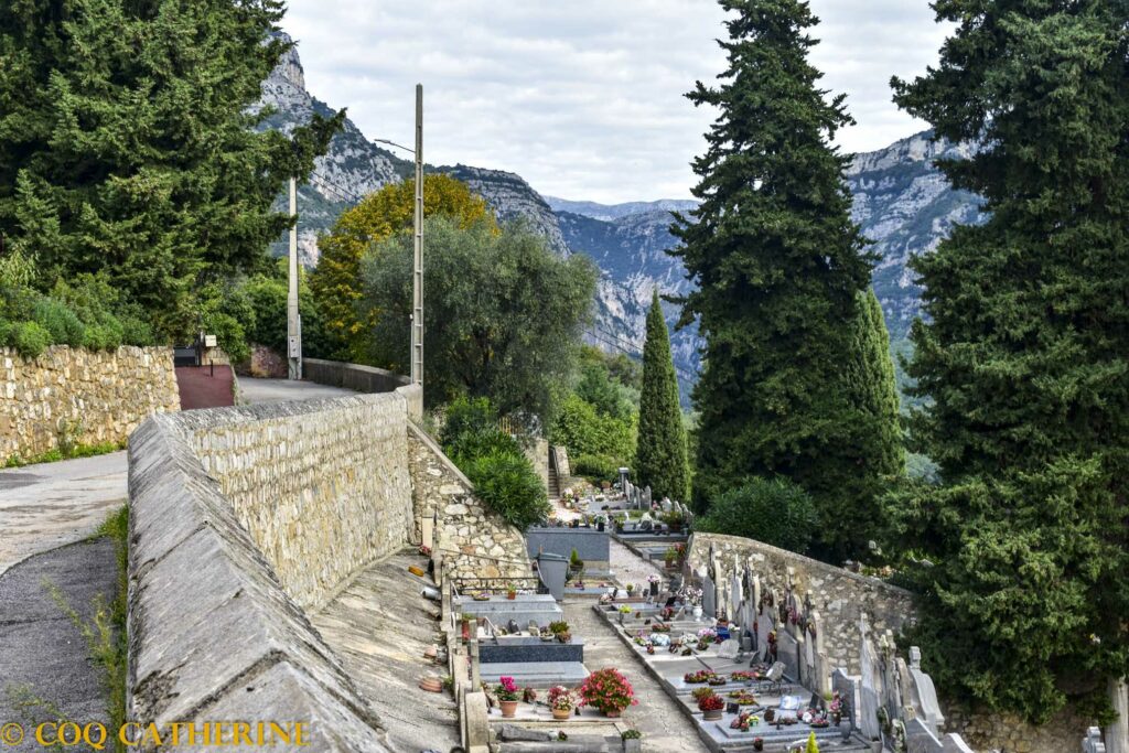 Depuis Antibes ou Cagne sur mer, je roule en direction de Grasse et la Colle sur Loup. Puis je me gare au cimetière de Bar-sur-Loup.