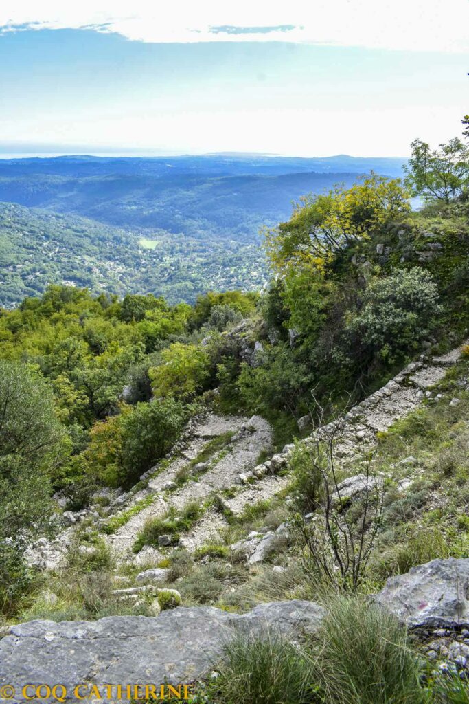 Enfin je vous emmène découvrir un village par un chemin historique qui offre un panorama exceptionnel du massif de l’Esterel, sur la Baie de Canne et les iles de Lérins jusque sur l’embouchure du Var, mais aussi sur les falaises calcaires verticales de la vallée du Loup.