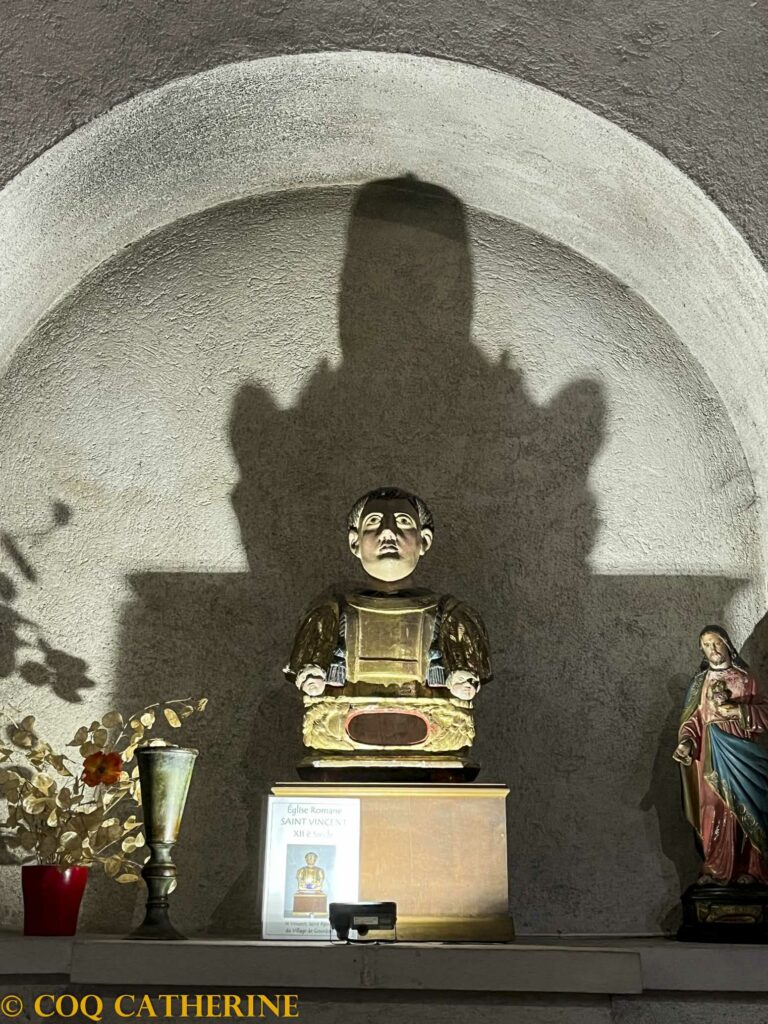 Puis je passe par l’église romane de Saint Vincent avant de profiter d’une terrasse du village pour me rafraichir.