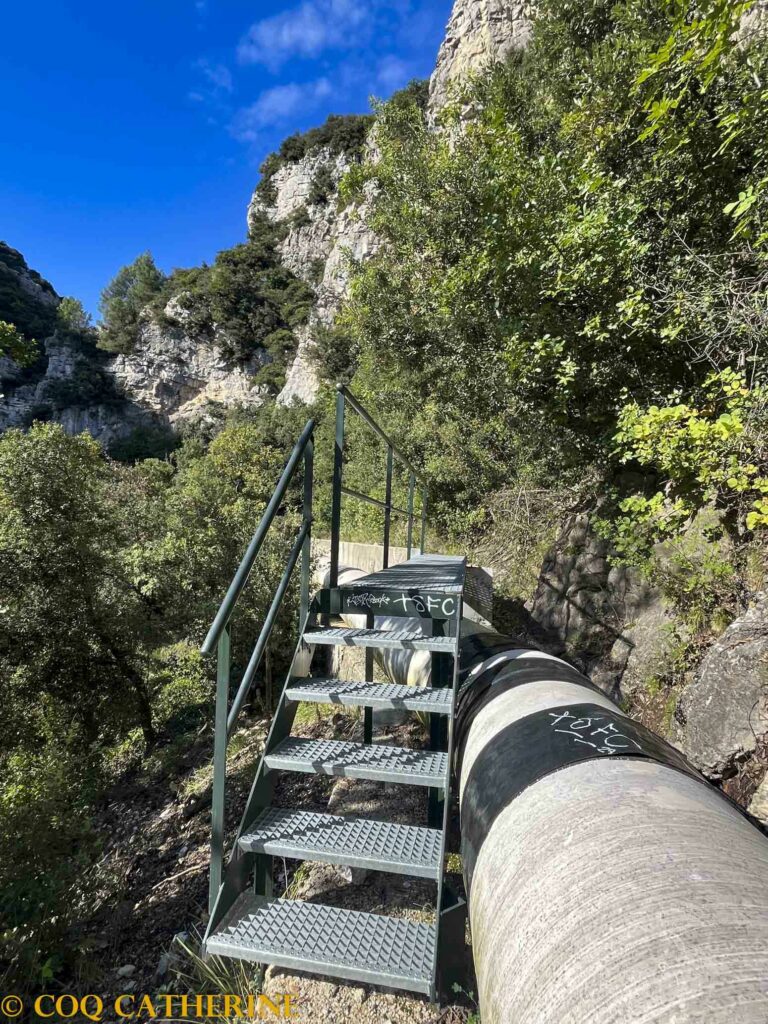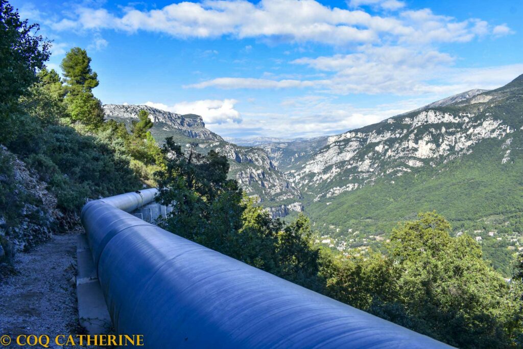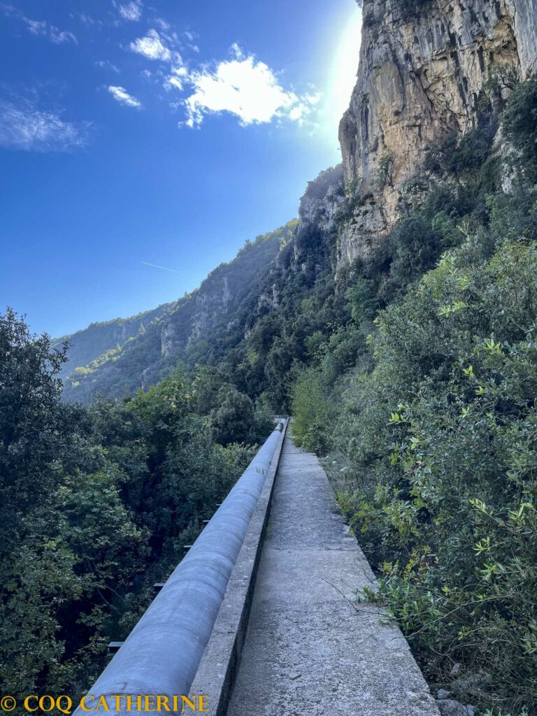 Par la suite, je reprends le chemin de la montée pour redescendre sur Bar-sur-Loup. Lorsque j’arrive à l’aqueduc du Foulon, je décide de parcourir le sentier qui longe la conduite.