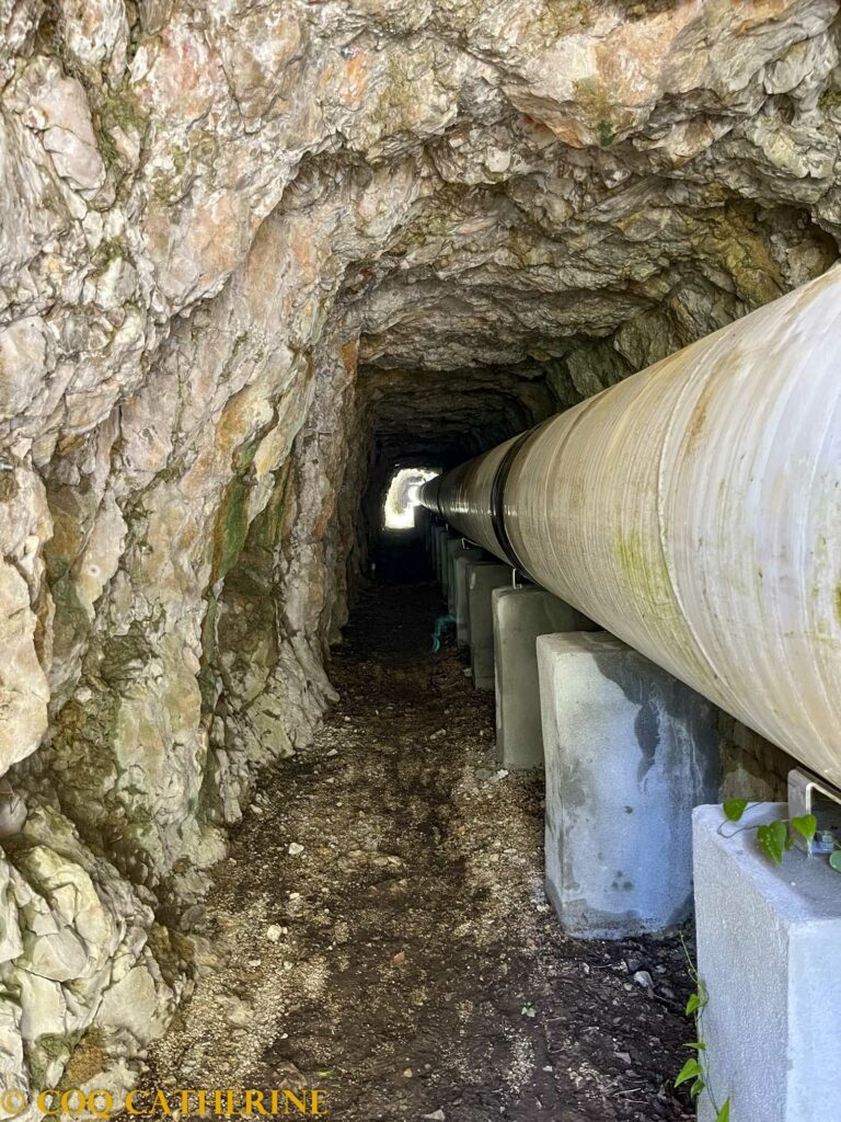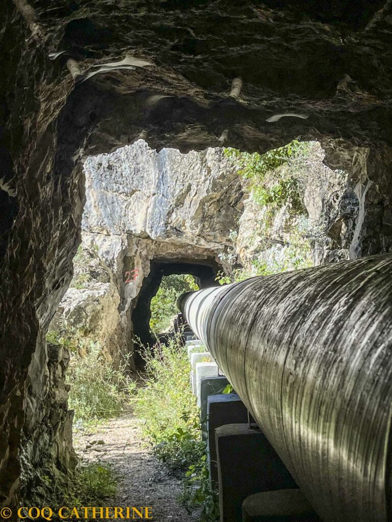 Le sentier de l’aqueduc est plus doux que le Sentier du Paradis, mais offre une ambiance totalement différente. Car ici, je marche à plat en longeant l’aqueduc en direction du Sud et de Bar du Loup. En chemin, je traverse de nombreux tunnels avec une atmosphère humide et presque mystérieuse. De plus, cet itinéraire passe à l’ombre l’après-midi.