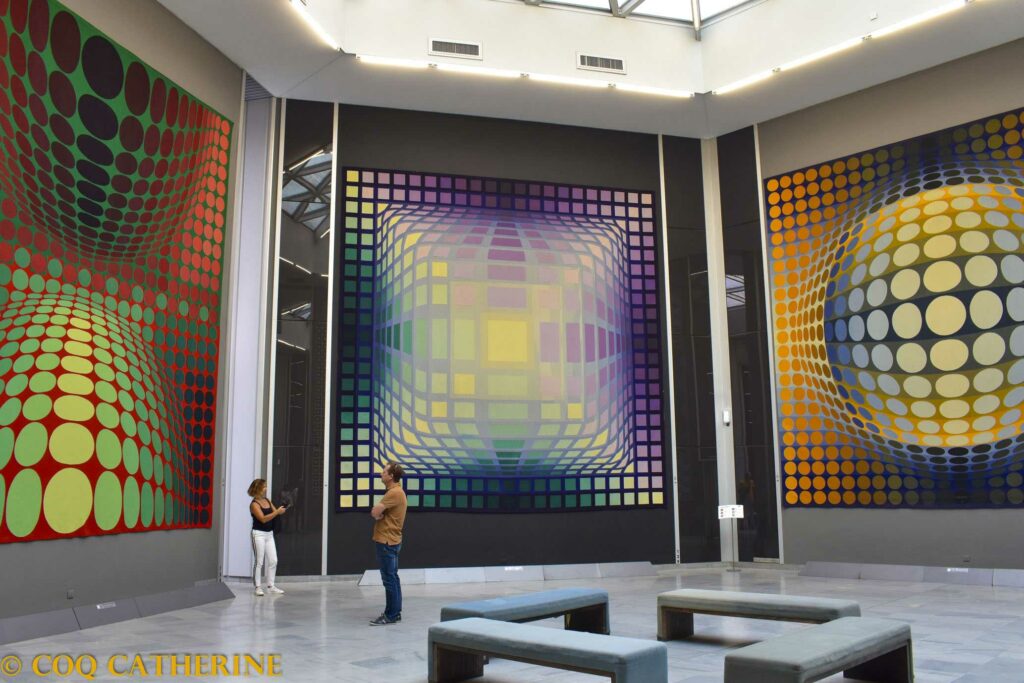 Au Jas de Bouffan, je vous recommande vivement la visite de la Fondation Vasarely. L’édifice d’architecture moderne a été lui aussi conçu par Vasarely afin d’abriter une suite de 42 intégrations monumentales ainsi que de nombreuses œuvre d’Arts de l’Artiste.