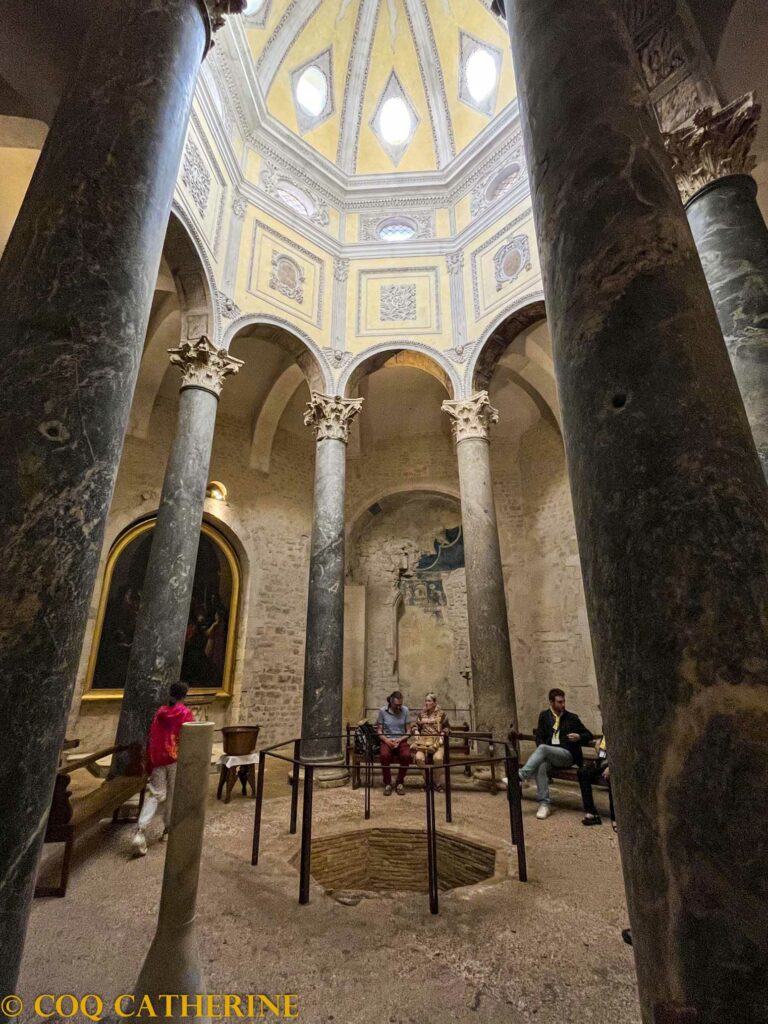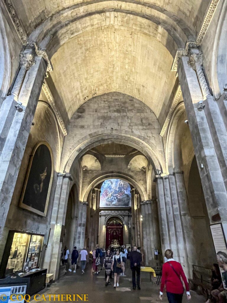 La Cathédrale Saint-Sauveur, avec son portail sa porte gothique flamboyant et sur la gauche, sa porte de style roman provençale, est un mélange d’art roman, gothique et baroque. Elle abrite de nombreux trésors dont le tryptique du buisson Ardent peint à la demande du Roi René. Ensuite, je continue vers l’extraordinaire baptistère d’époque merovingienne