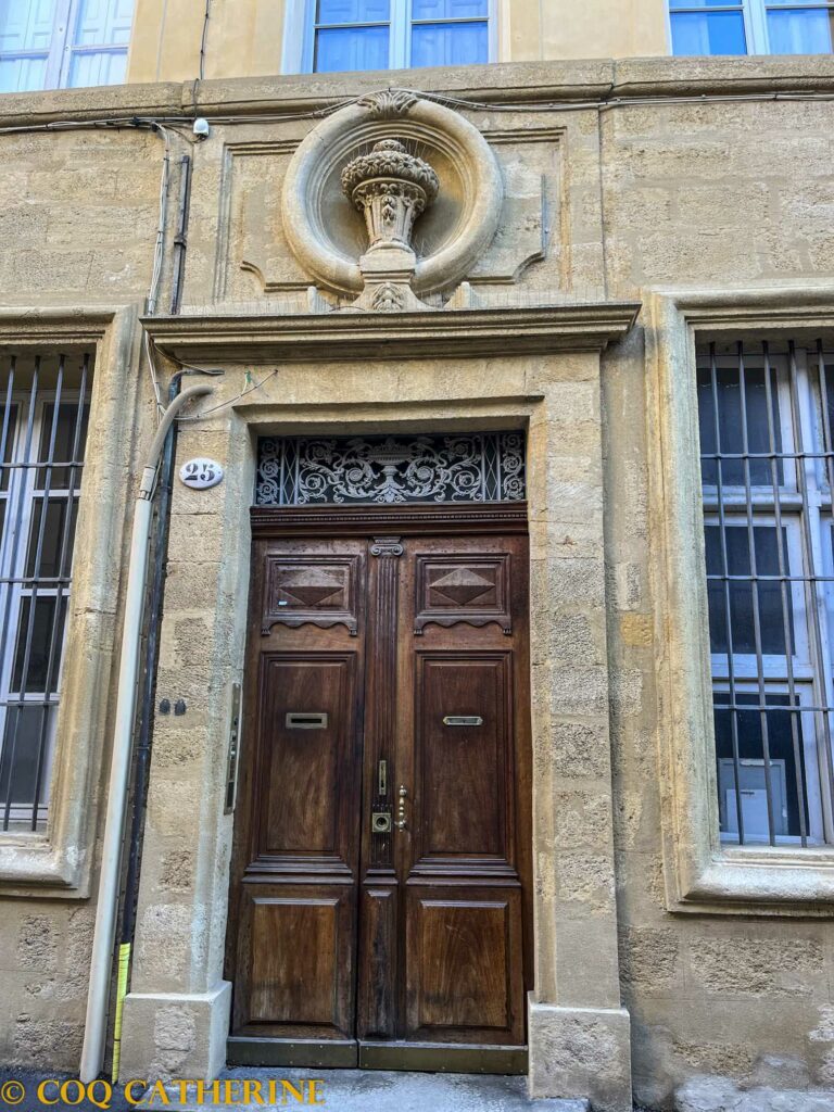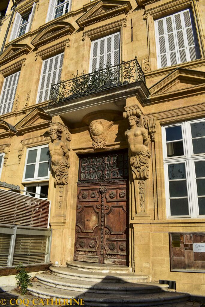 Le Quartier Mazarin, au sud du Cours Mirabeau, fut créé au XVIIe siècle pour l’aristocratie. Je me laisse aller dans ce quartier aux ruelles parallèles et perpendiculaires afin d’admirer ses hôtels particuliers aux façades somptueuses et des portails monumentaux.