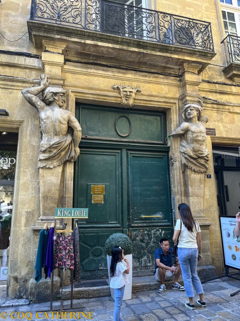 D’ailleurs, ici, l’architecture des façades témoignent de la prodigieuse évolution sociale et urbaine, qui marque l’Age d’Or de la ville et sa transformation sous le règne de Louis XIV. J’y découvre de nombreux hôtels particuliers du XVIIe et XVIIIe siècles avec divers décors et ornements et parfois des cariatides supportant les balcons ornés de ferronneries.