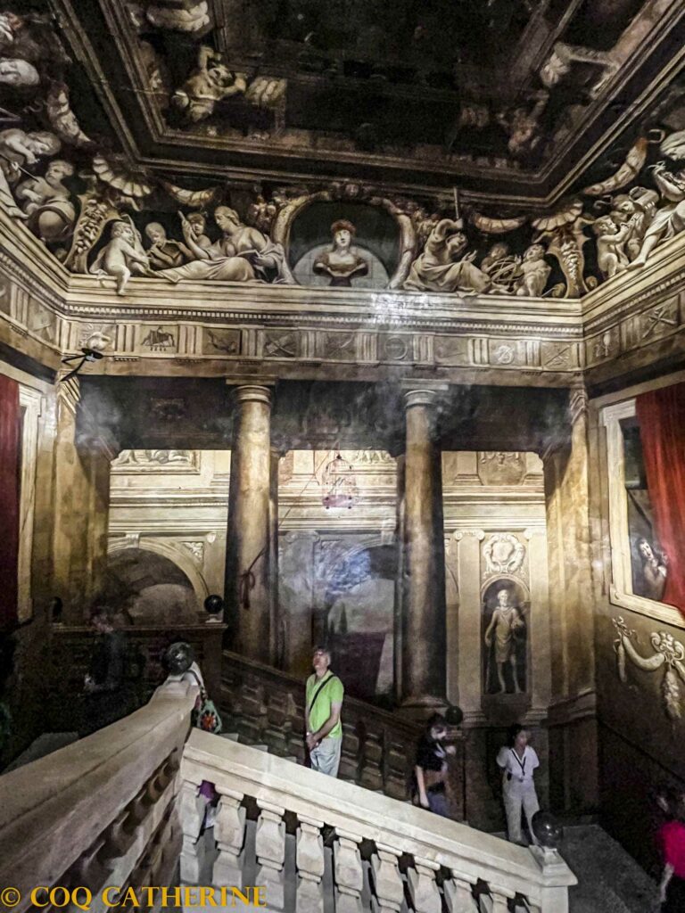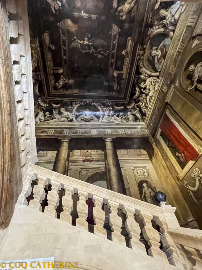 Il etait ouvert lors des journées du Patrimoine, j’ai pu admirer son escalier monumental baroque avec une balustrade et dont les murs et le plafond sont couverts de fresques