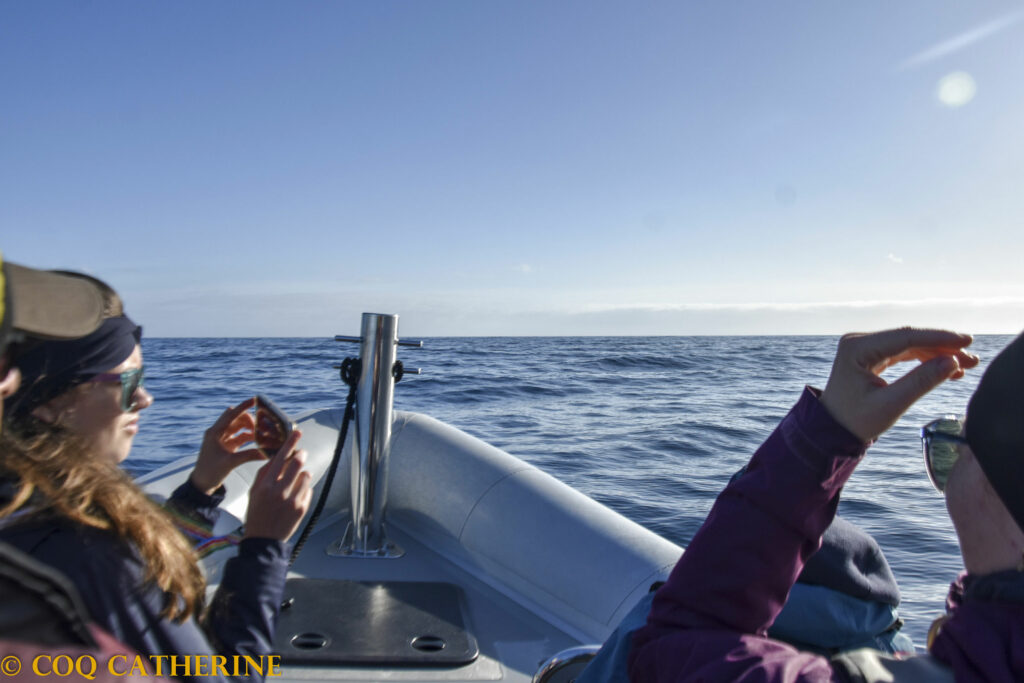 Je vous recommande de réserver votre sortie auprès de cet opérateur Eco-responsable, car j’ai pu admirer de nombreux globicéphales jouer autour de notre grand zodiac et les nombreuses informations de notre guide Camila m’ont permis de mieux appréhender l’environnement marin. Par contre le retour fut sportif avec les fortes vagues de Février.