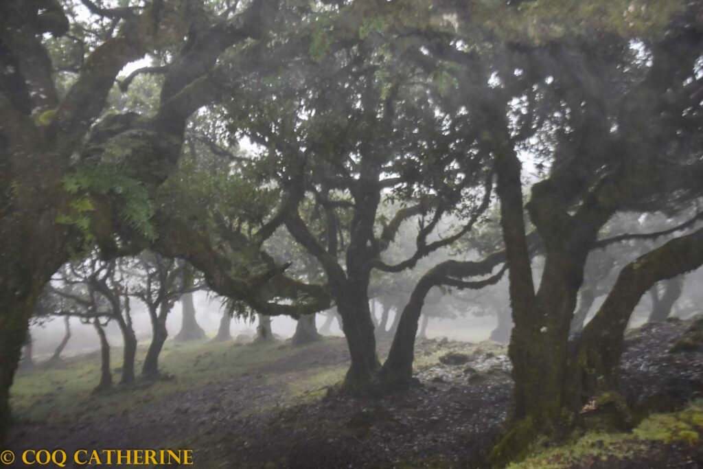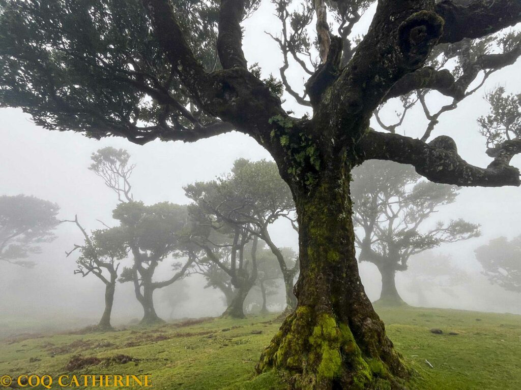 Le site est souvent enveloppé d’un brouillard épais et silencieux. C’est cette brume qui donne à Fanal son aura mystique. Les arbres, couverts de lichens barbus, semblent bouger dans la vapeur blanche. Des vaches paissent paisiblement entre les troncs noirs, ajoutant une touche bucolique à ce décor de film fantastique. C’est un lieu de contemplation absolue.