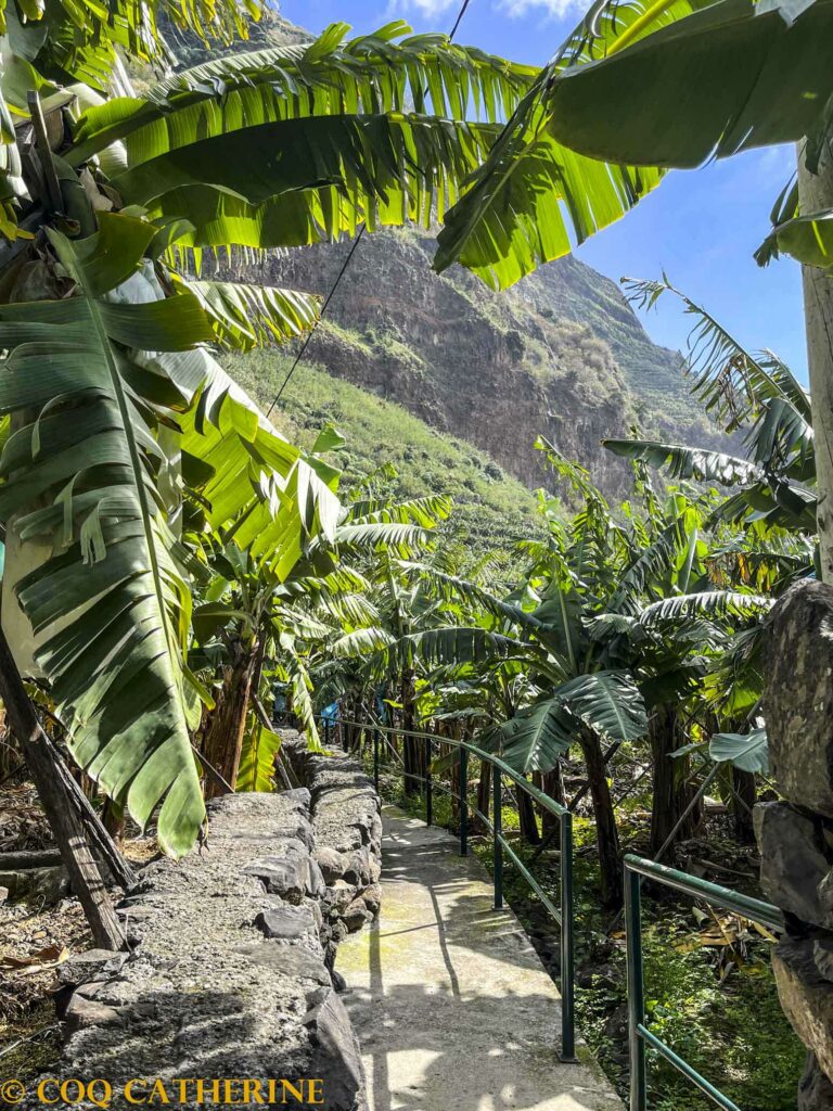 Ce n’est pas une randonnée sportive, mais une promenade immersive au cœur des plantations. Vous marchez sur des murets étroits, au milieu des bananiers chargés de régimes. Les feuilles géantes forment un toit naturel, créant une atmosphère tropicale et humide. Enfin des bananes sont en vente directement sur les sentiers !