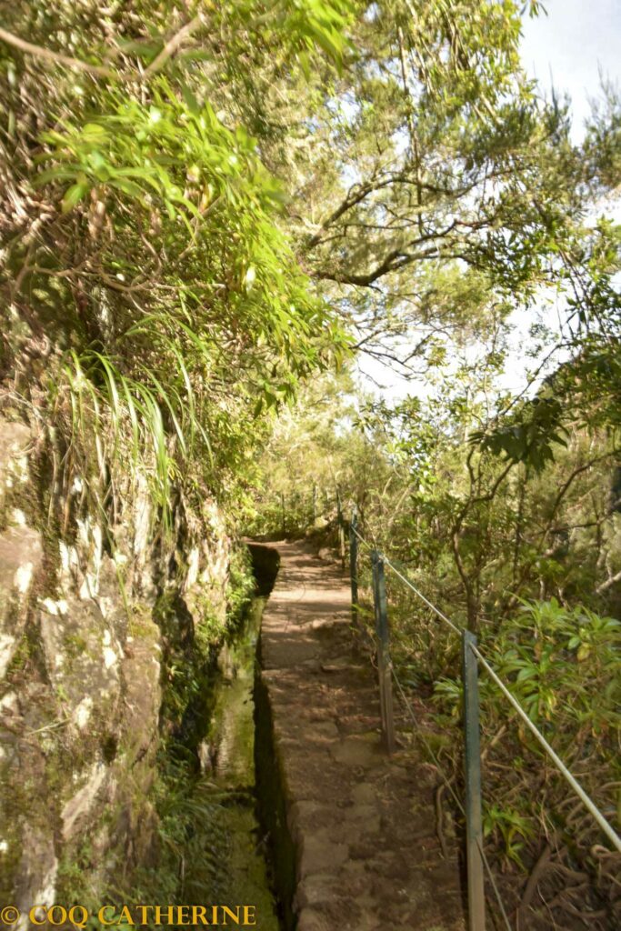 Je me souviens encore de ma première randonnée le long d’une levada. Car ici le chemin évolue dans une végétation dense et humide. Le sentier est par endroit étroit entre la falaise et le canal d’eau. Puis, je traverse un premier tunnel, puis un second encore plus sombre avec les pieds dans l’eau. Heureusement, j’ai une lampe pour anticiper les obstacles dans le noir opaque du tunnel. Enfin, je découvre une cascade, passe sous des chutes d’eau, pour une immersion totale en pleine nature.