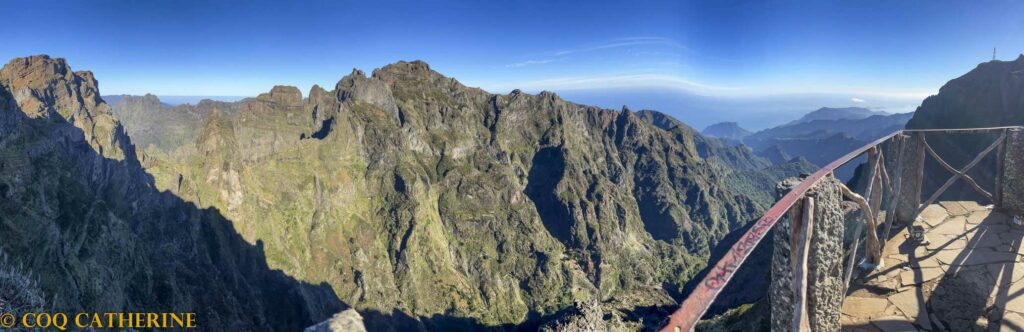 C’est « LA » randonnée incontournable de Madère (PR1). Le départ se fait au Pico do Arieiro (1818 m), qui est accessible en voiture. Cette randonnée peut être parcourue à l’aube, pour admirer le lever du soleil sur la mer et les roches volcaniques s’éclairée d’orange, de violet et de rouge !