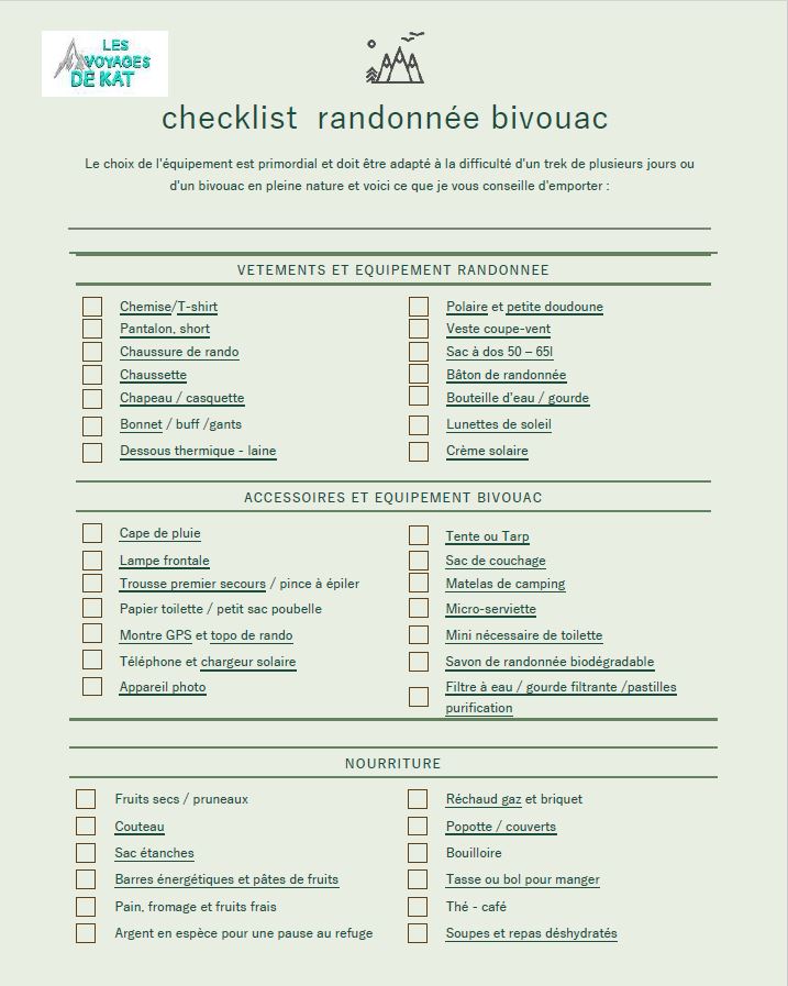 Cheklist trek de plusieurs jours avec nuit en refuge